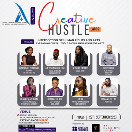 Human Rights and Arts with the support of the British Council, Women's Rights in human rights, partnered with Healing with Maria for a storytelling program airing on DSTV, Training and etc.